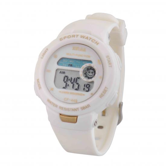 An energetic colored digital watch with 5 ATM, is very suitable for girls and boys to wear in all seasons.